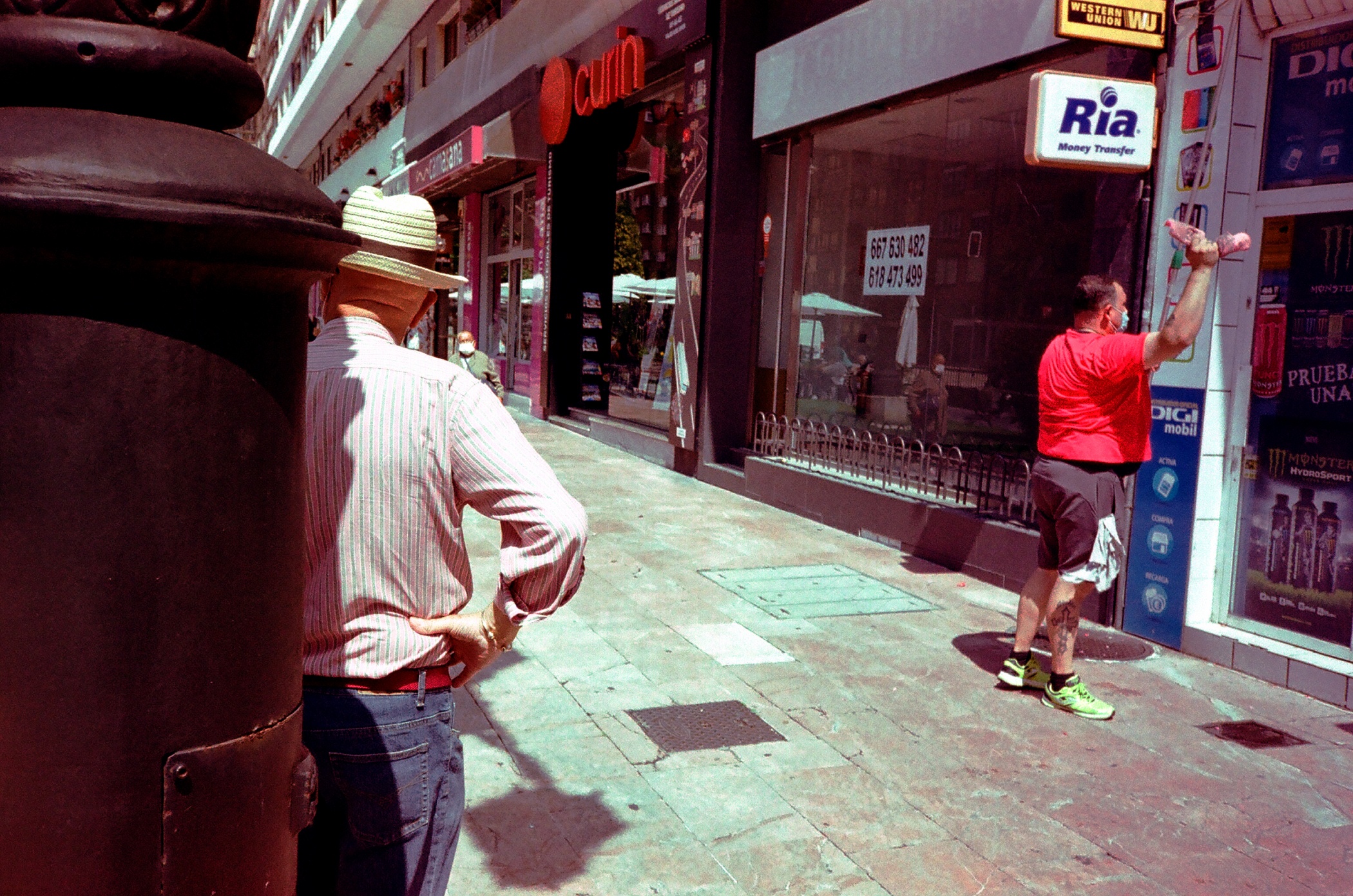 "A huge and birdless silence". Un silencio enorme sin pájaros. Así se refiere el poeta inglés Philip Larkin a la última en llegar, la que nunca falta a la cita. La serie Absorta está construida con película a color vencida, como vencido estaba el que tomaba las fotos. En ella se exploran las jornadas vividas en el cotidiano tras la muerte de mi padre -"estamos tristes pero no dejemos de comer" era el lema- en una ciudad que, como todas, es ajena al sufrimiento de quienes la recorren. En esos días imaginaba que, si el peso de la tristeza recayera por momentos en una sola persona, quizás estaba teniendo ese raro privilegio un día de junio de 2021 mientras caminaba por las calles de Oviedo mirando escaparates para comprarme, por insistencia de mi madre, unos zapatos negros que no pusieran en riesgo la dignidad familiar en el funeral inminente. Los zapatos tienen su foto propia, tomada exactamente un año después de la ceremonia, antes de volver a calzármelos por segunda vez para la misa de "cabo de año" en Salinas. Esa otra imagen forma parte de Carrington.